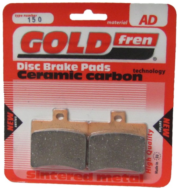 GOLDFREN Ceramic-Carbon Bremsbeläge bestehen aus einem Metall-Keramik und Graphit-Eisen Gemisch. Hoher statischer Reibungskoeffizient, hohe Bremskraft bis zu 500°. Kein Ablösen des Bremsmaterials, da mit der Trägerplatte verlötet. Kein unnötiger Bremsscheibenverschleiß. Ca. 3-mal längere Lebensdauer als organische oder Kevlar Bremsbeläge.
