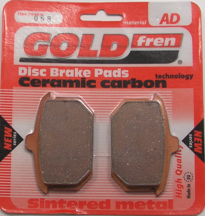 GOLDFREN Ceramic-Carbon Bremsbeläge bestehen aus einem Metall-Keramik und Graphit-Eisen Gemisch. Hoher statischer Reibungskoeffizient, hohe Bremskraft bis zu 500°. Kein Ablösen des Bremsmaterials, da mit der Trägerplatte verlötet. Kein unnötiger Bremsscheibenverschleiß. Ca. 3-mal längere Lebensdauer als organische oder Kevlar Bremsbeläge. Verhindert Bremsenquietschen