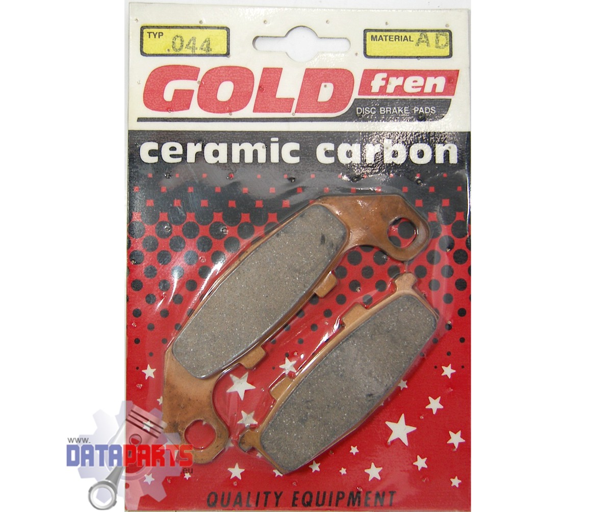 GOLDFREN Ceramic-Carbon Bremsbeläge bestehen aus einem Metall-Keramik und Graphit-Eisen Gemisch. Hoher statischer Reibungskoeffizient, hohe Bremskraft bis zu 500°. Kein Ablösen des Bremsmaterials, da mit der Trägerplatte verlötet. Kein unnötiger Bremsscheibenverschleiß. Ca. 3-mal längere Lebensdauer als organische oder Kevlar Bremsbeläge. Verhindert Bremsenquietschen