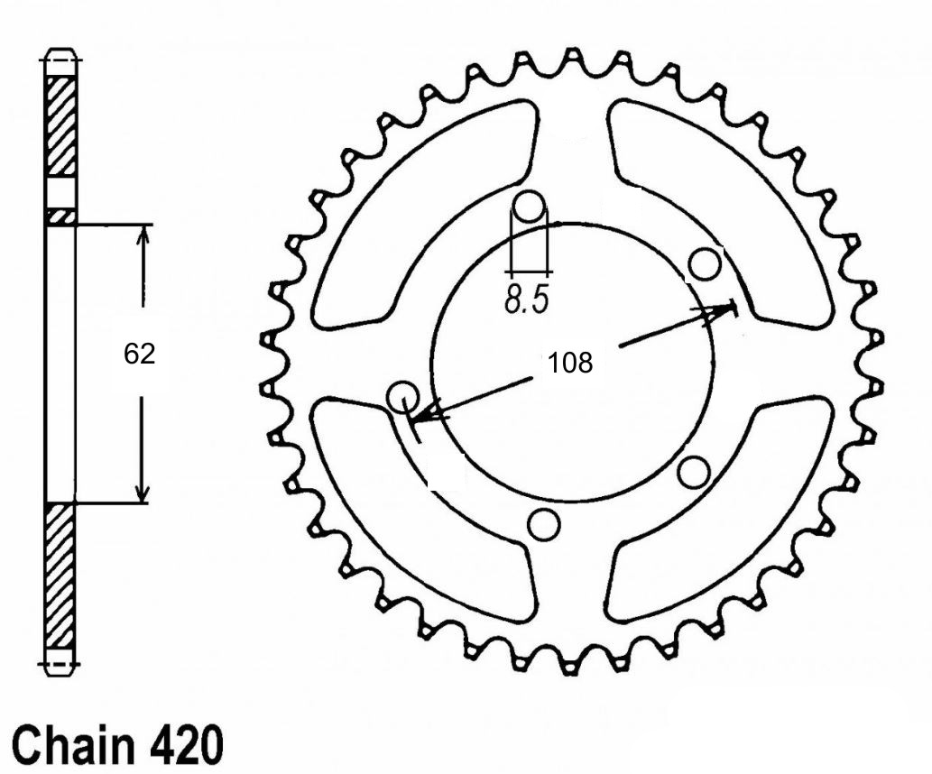 CHAIN WHEEL 52 T 420 ID 62MM